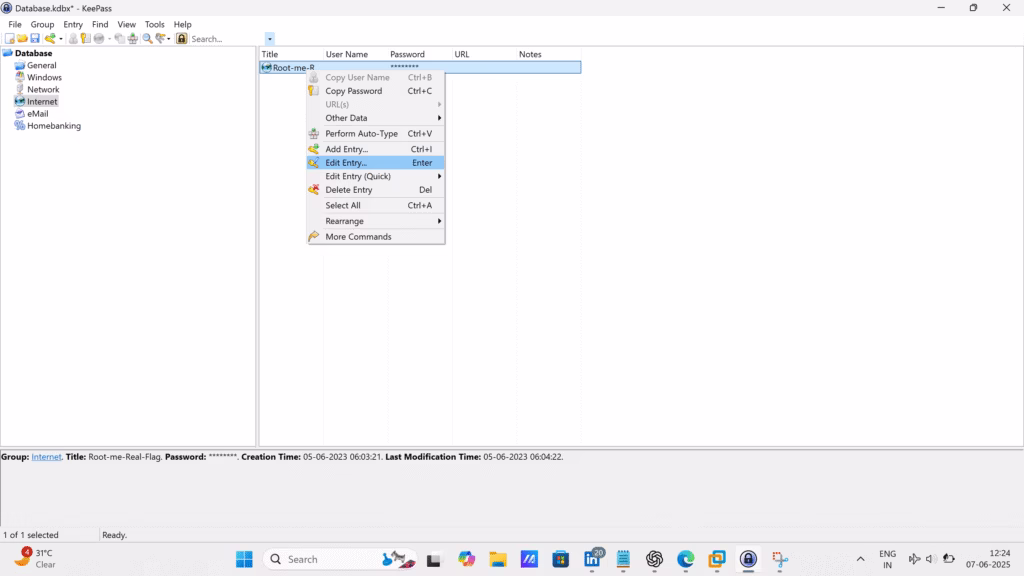 We are provided with two files for this challenge: a PNG image and a KeePass database file. To access the database, you’ll need to download KeePass—a popular password manager. The goal is to retrieve the flag, which is stored within the database. To do that, we first need to determine the correct master password.